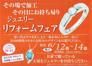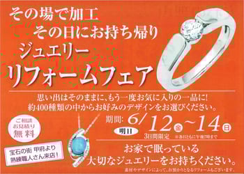 6月12日(金)~14日(日)までの三日間、ジュエリーリフォームフェアを開催いたします!