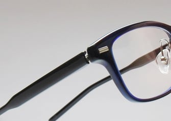 ベーシックで使いやすいデザインにはアクセントとしてフロントパーツに飾り鋲が施されています。調整可能なクリングスタイプの鼻パットを取り付けることでより掛けやすくした一本です。