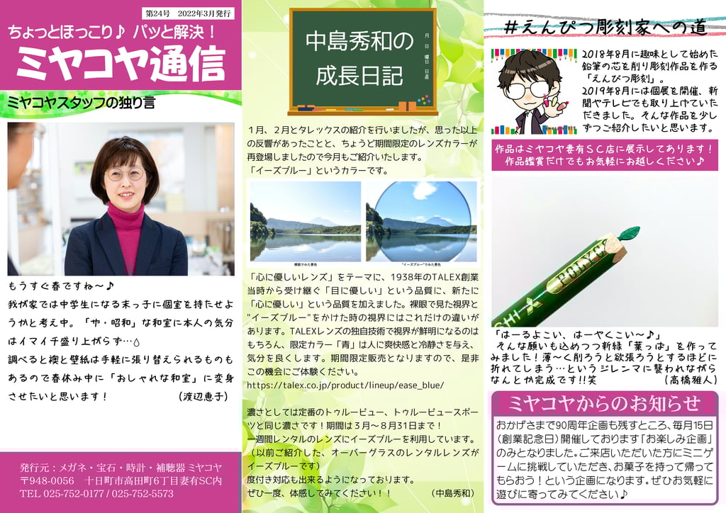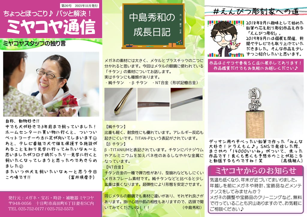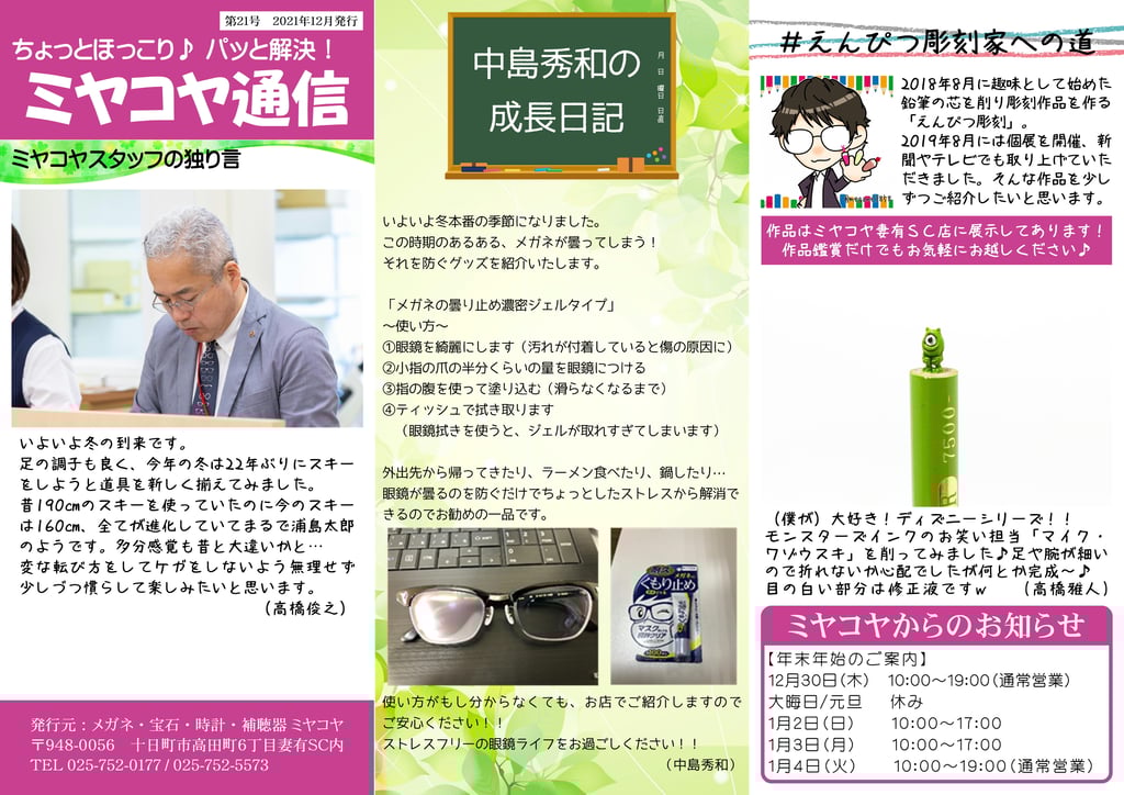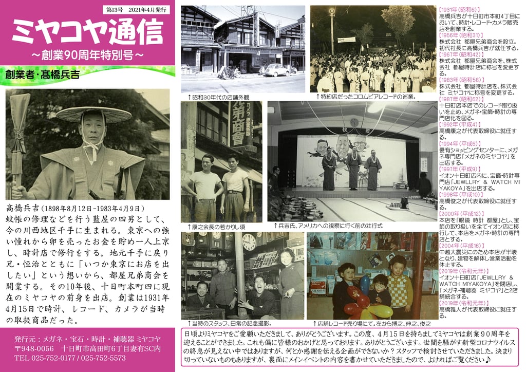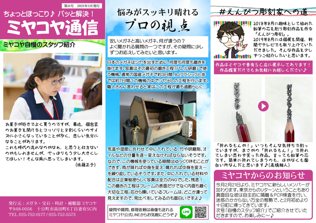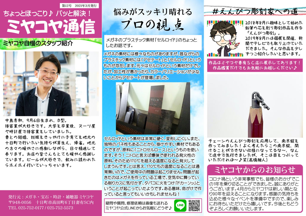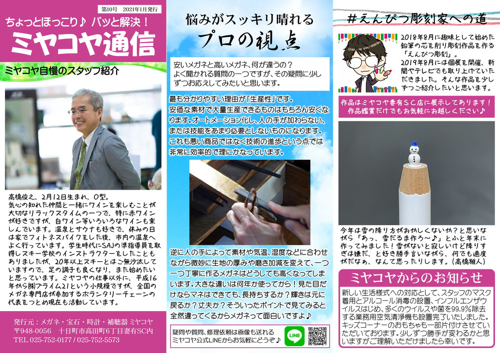 新潟県十日町市で昭和6年から続く、メガネ・補聴器・宝飾・時計の老舗専門店「ミヤコヤ」