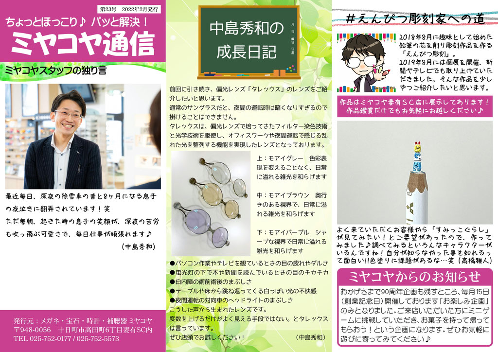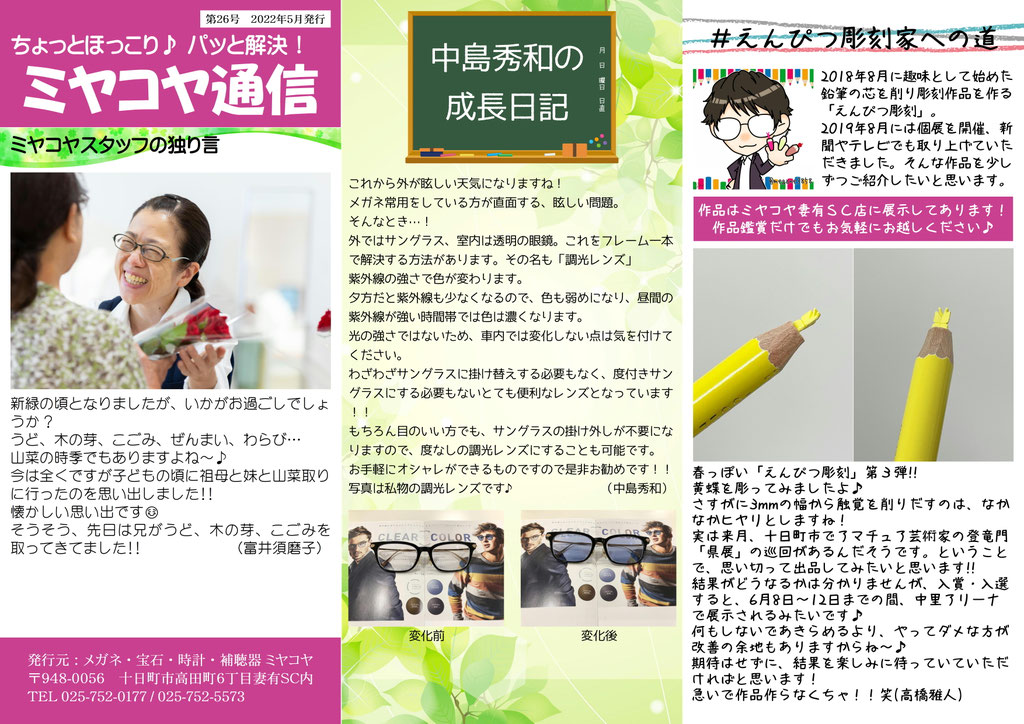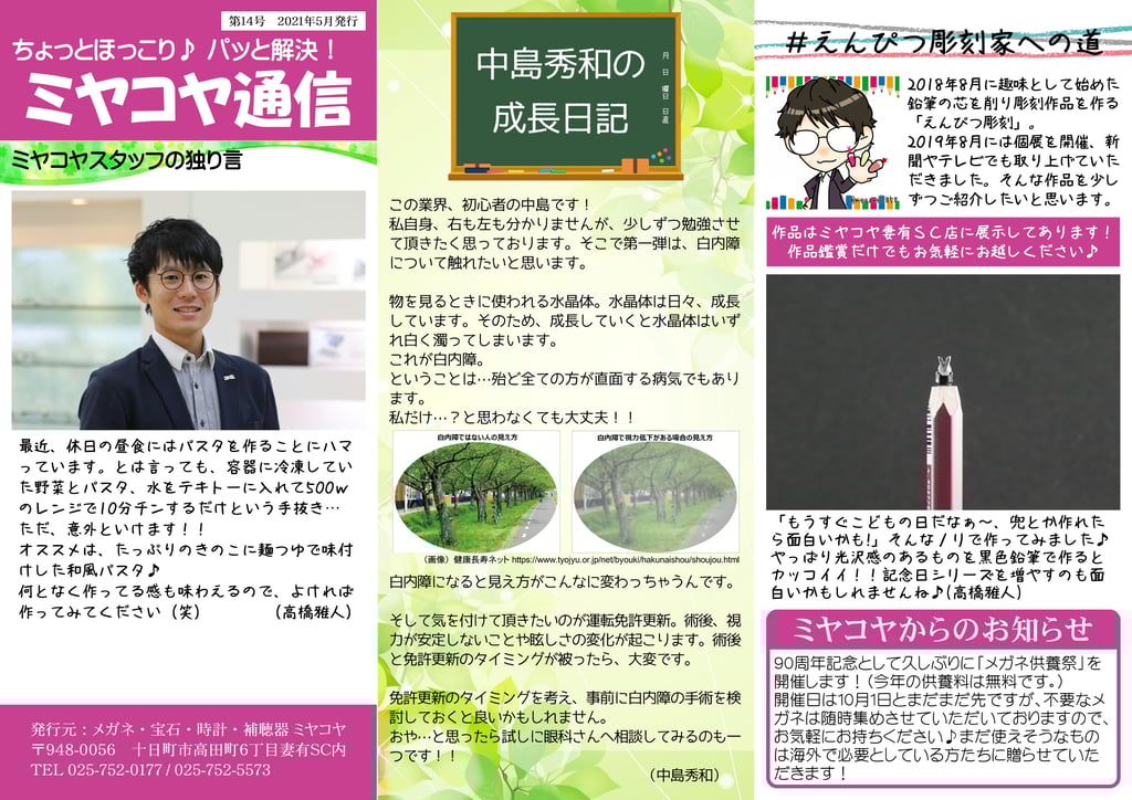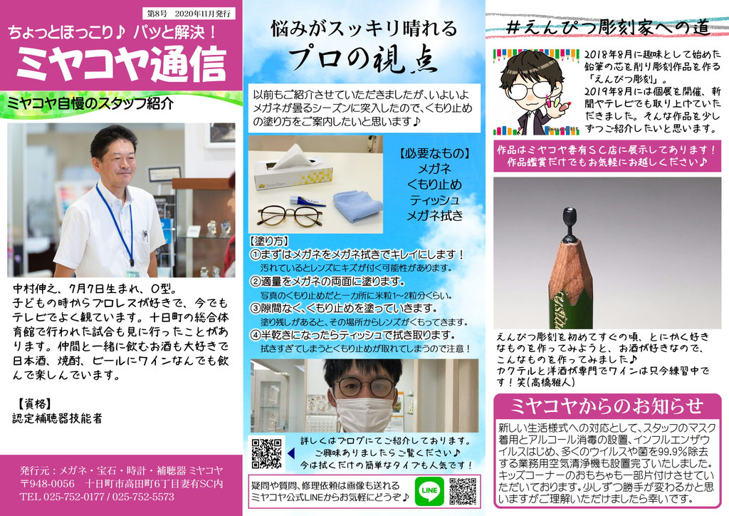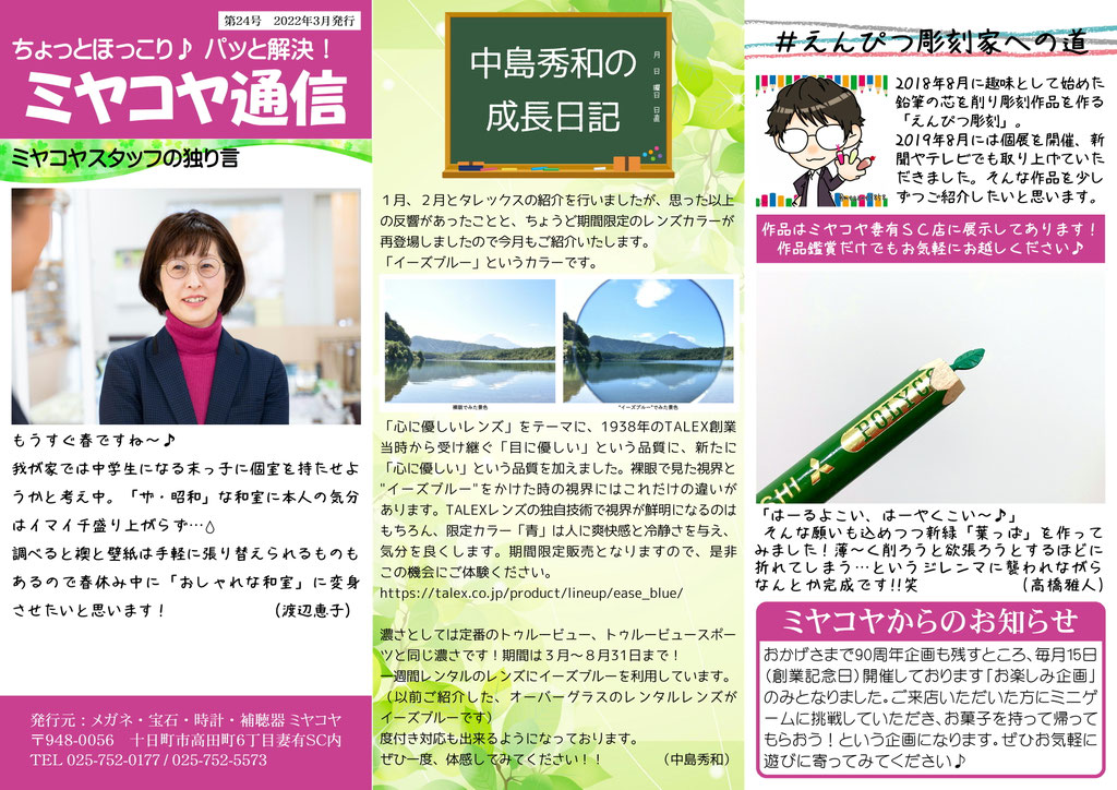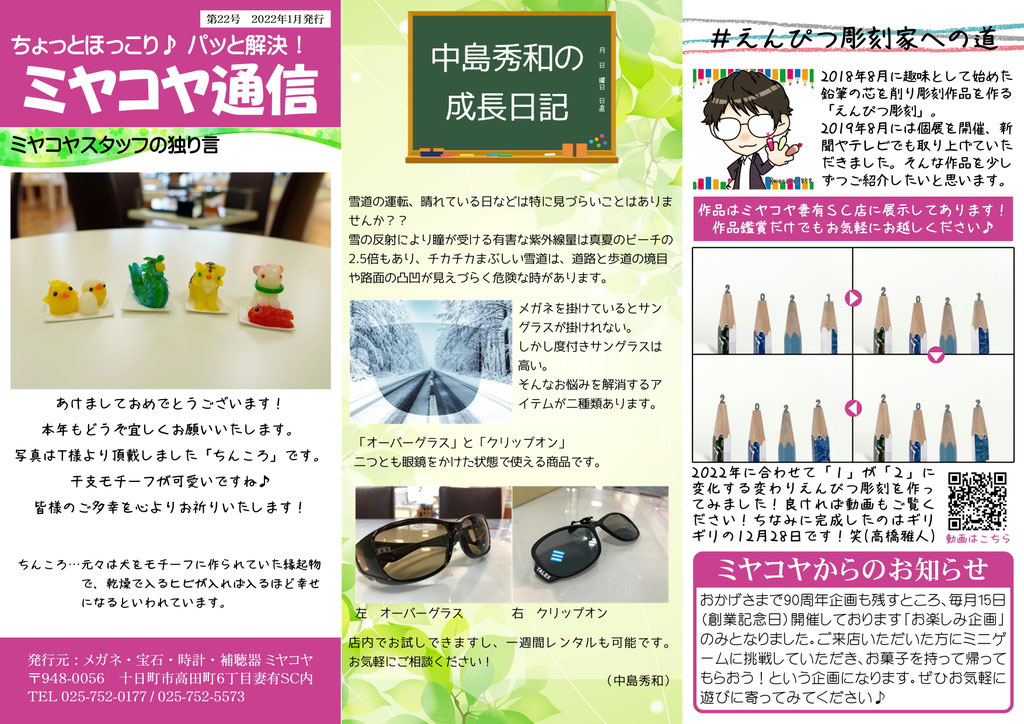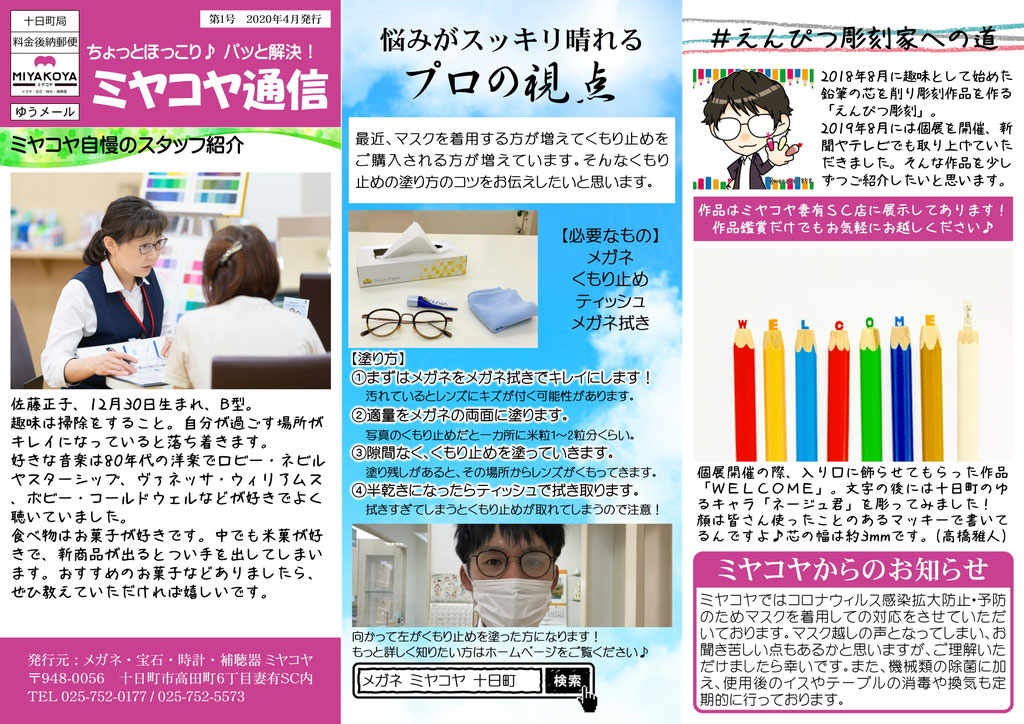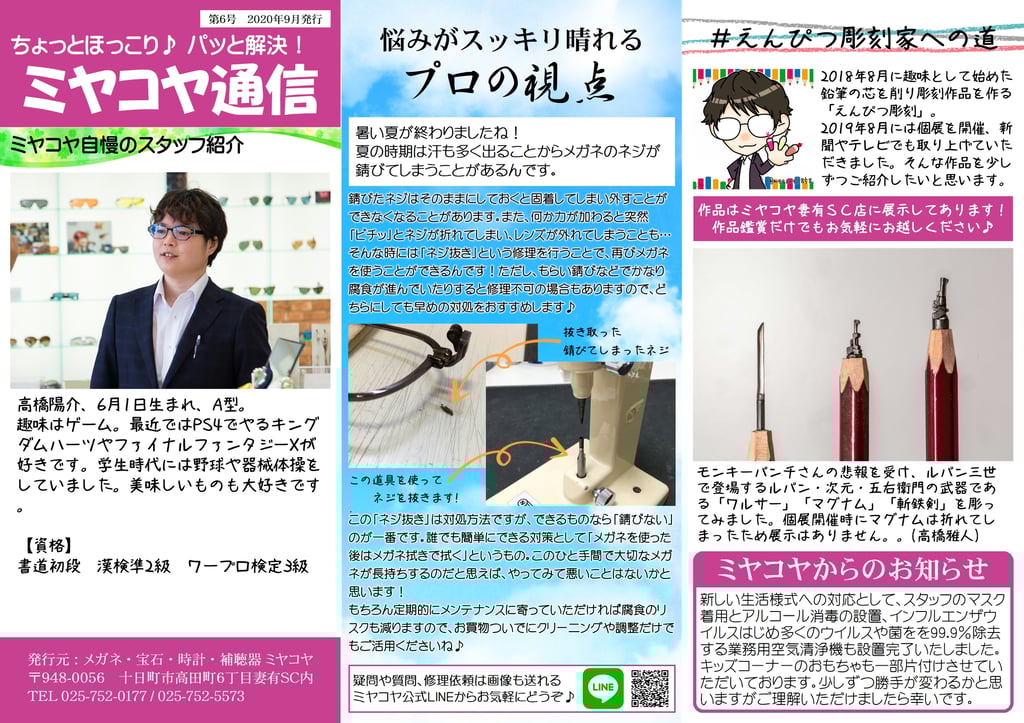 新潟県十日町市で昭和6年から続く、メガネ・補聴器・宝飾・時計の老舗専門店「ミヤコヤ」
